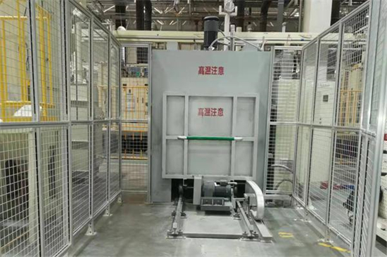 由伺服電機(jī)驅(qū)動(dòng)臺(tái)車進(jìn)出,將模具設(shè)置于臺(tái)車上,進(jìn)爐后加熱至指定溫度,完成后自動(dòng)出爐。