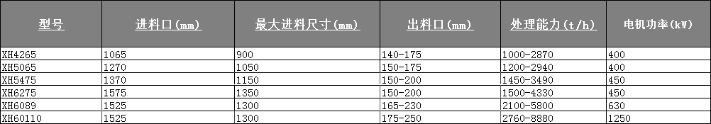 XH旋回式破碎機整機強度更高,使用壽命更 長,確保更安全可靠的連續(xù)高強度生產(chǎn);高強度超 重型機架設計,可以適用于惡劣的生產(chǎn)工況,確保